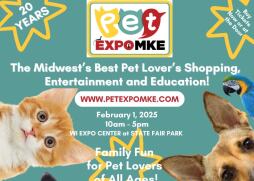 Pet lovers of all ages will enjoy 143,000 square feet of the Midwest’s best pet loving shopping and services, live entertainment, activities and education, meet Wisconsin’s cutest adoptables and so much more! All proceeds from ticket sales are returned to our community to help animals in shelters and rescues. Due to our large crowds, personal pets will not be allowed. Service animals specifically trained to aid a person with a disability are welcome. Can’t wait to meet you in February!