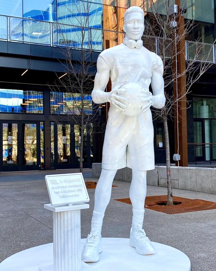 Stop by the plaza during tonight’s game through halftime to take a photo with a life-size statue of @Giannis_An34, in honor of JBL x Giannis and the launch of the @JBLaudio Freak Edition headphones. 😎🎧🇬🇷 #JBLGreekOut pic.twitter.com/4HhqFuj7aP