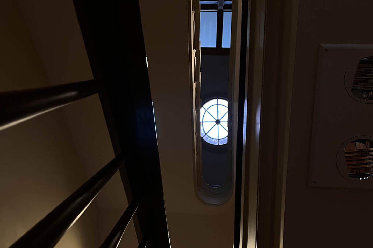 Original stained glass oculus. (Bobby Tazilo / OnMilwaukee.com)